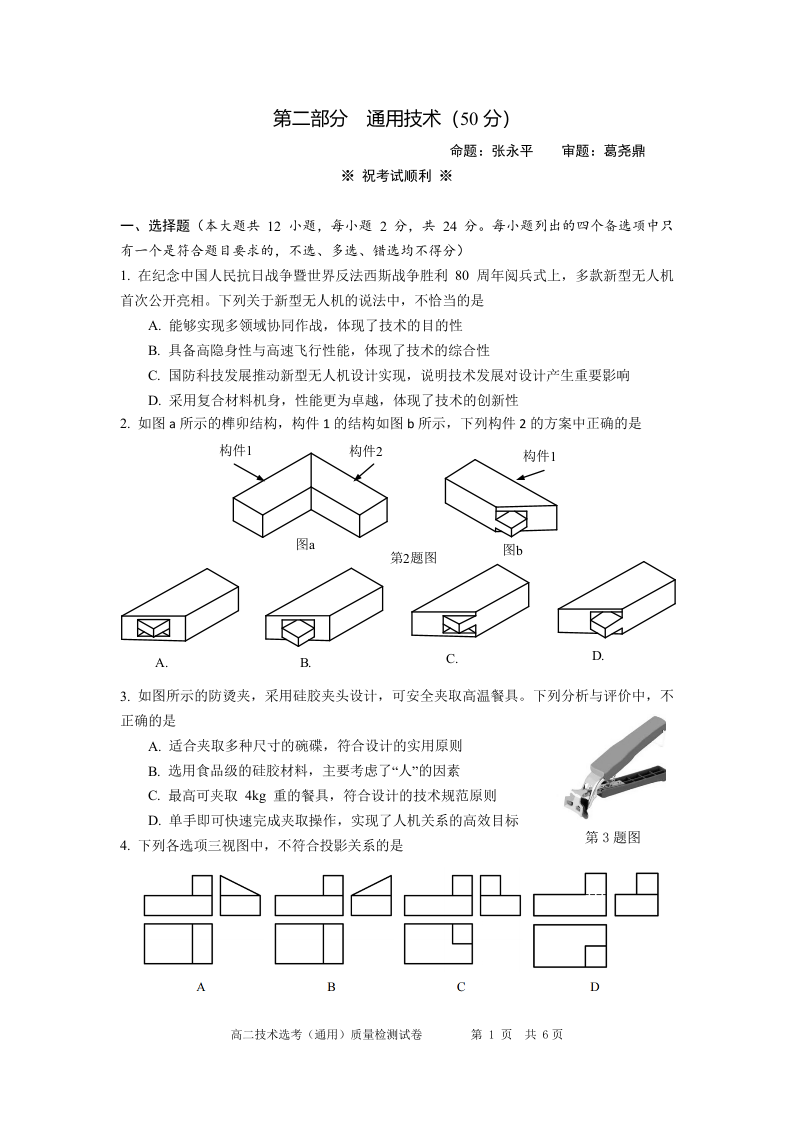 高二通用技术--浙江省余姚中学2025-2026学年高二上学期12月月考