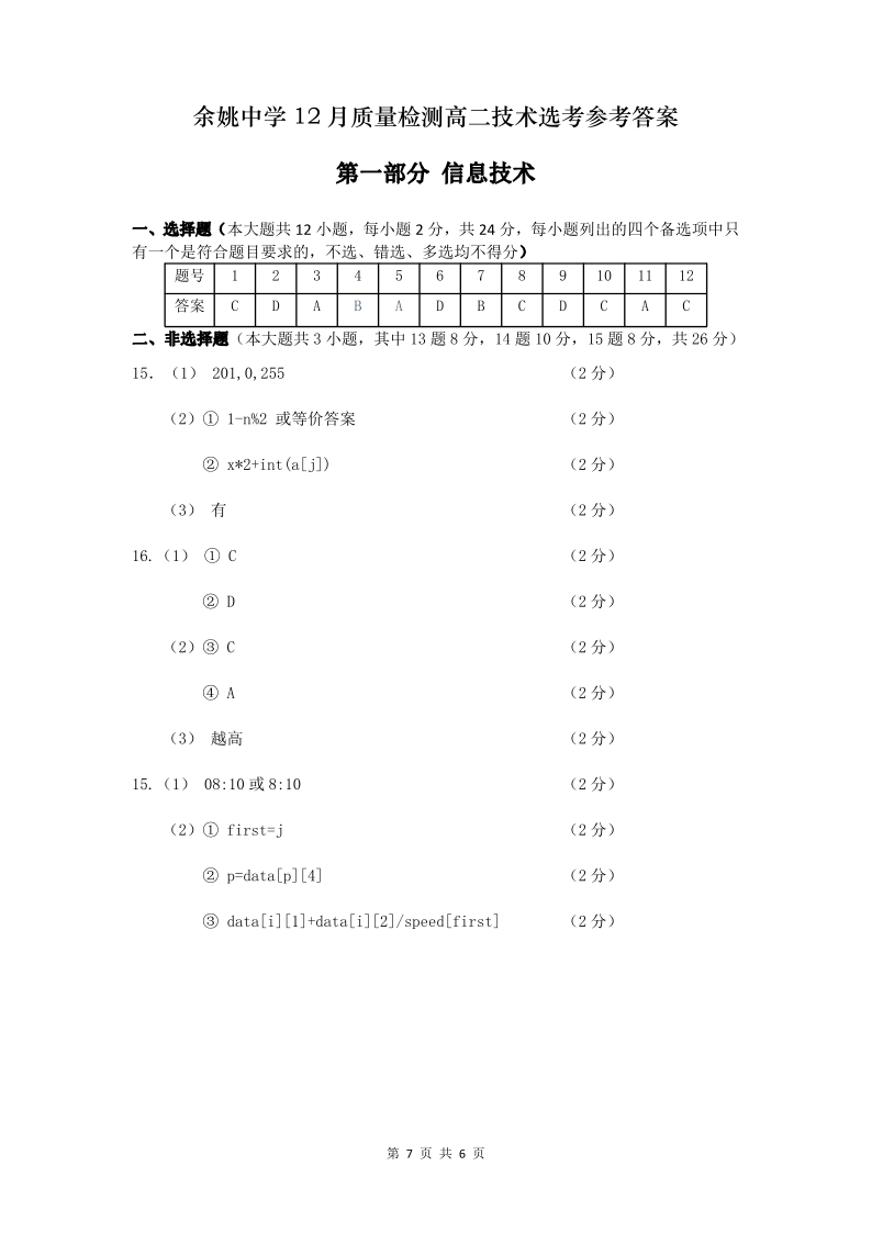 高二信息技术答案--浙江省余姚中学2025-2026学年高二上学期12月月考