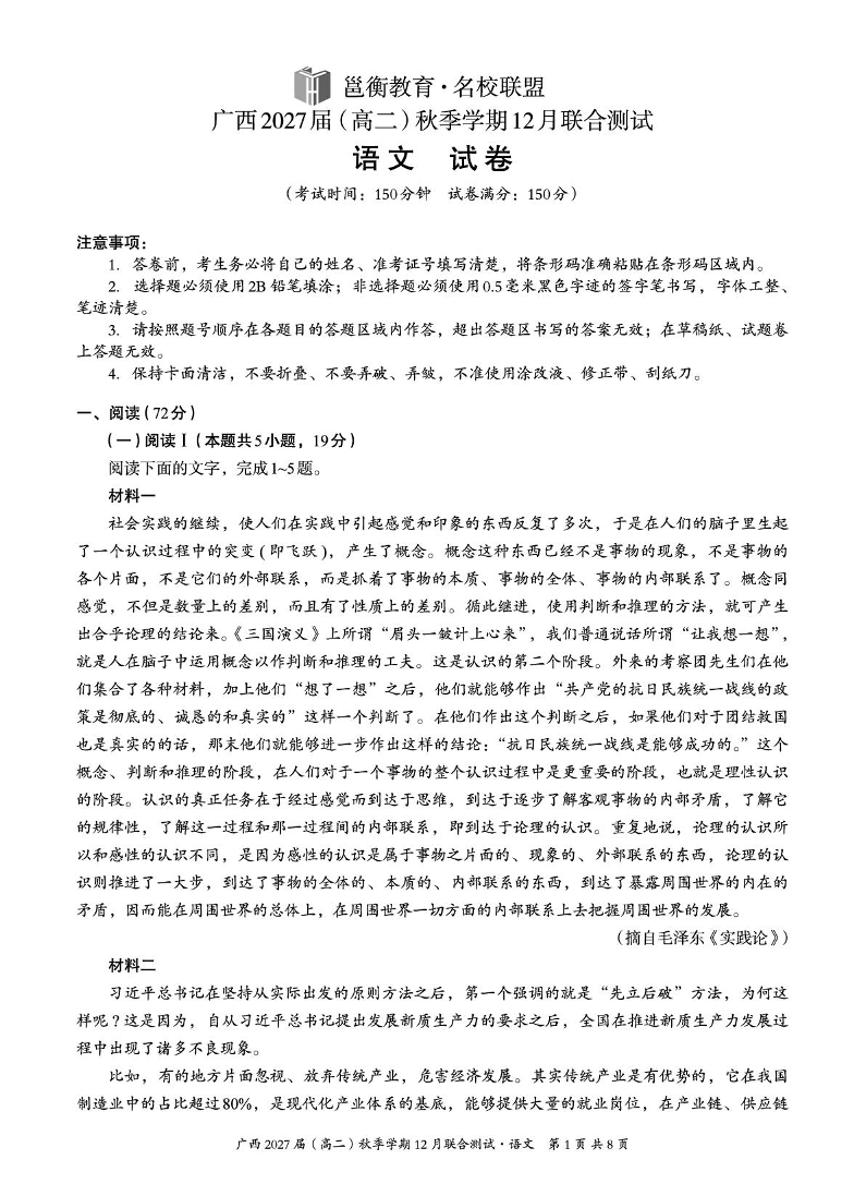 高二语文--广西邕衡教育·名校联盟2025-2026学年高二秋季学期12月联合测试