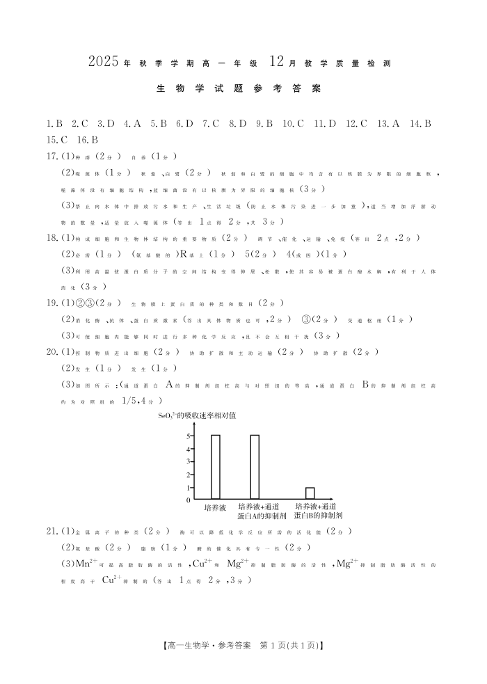高一生物答案--广西壮族自治区贵港市、桂林市2025-2026学年高一上学期12月月考