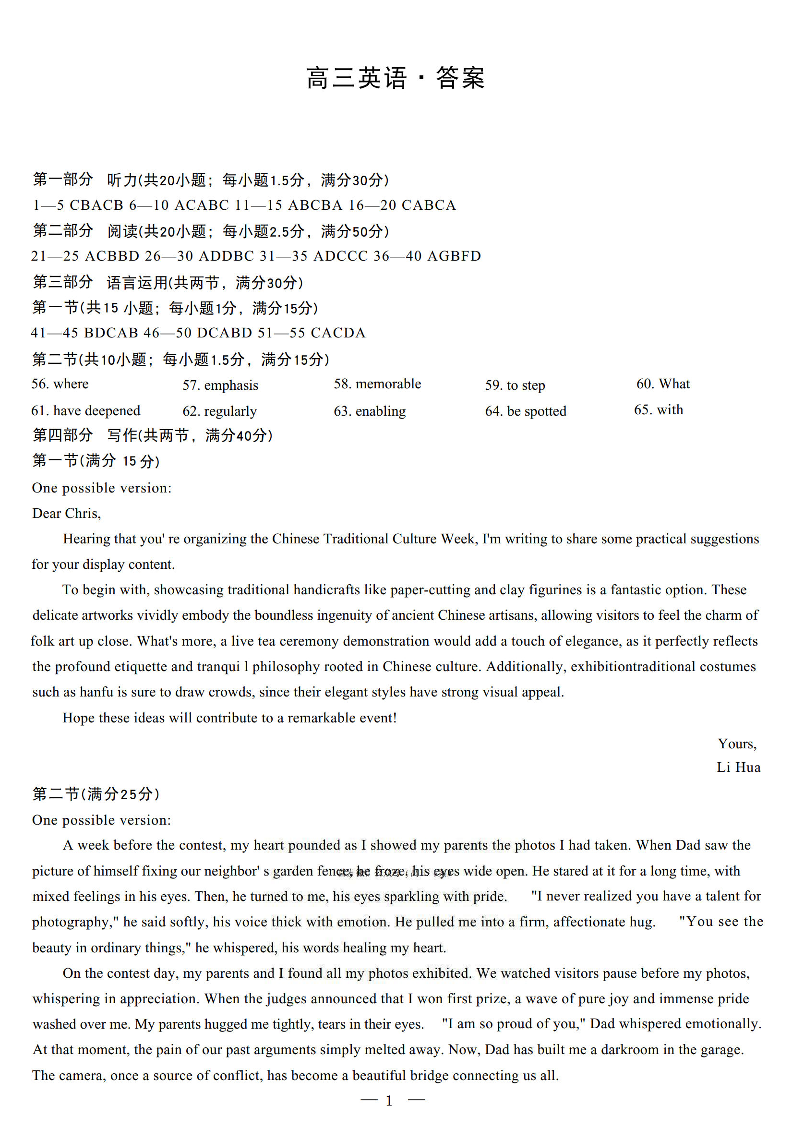高三英语答案--湖南省湘一名校联盟2026届高三上学期12月质量检测