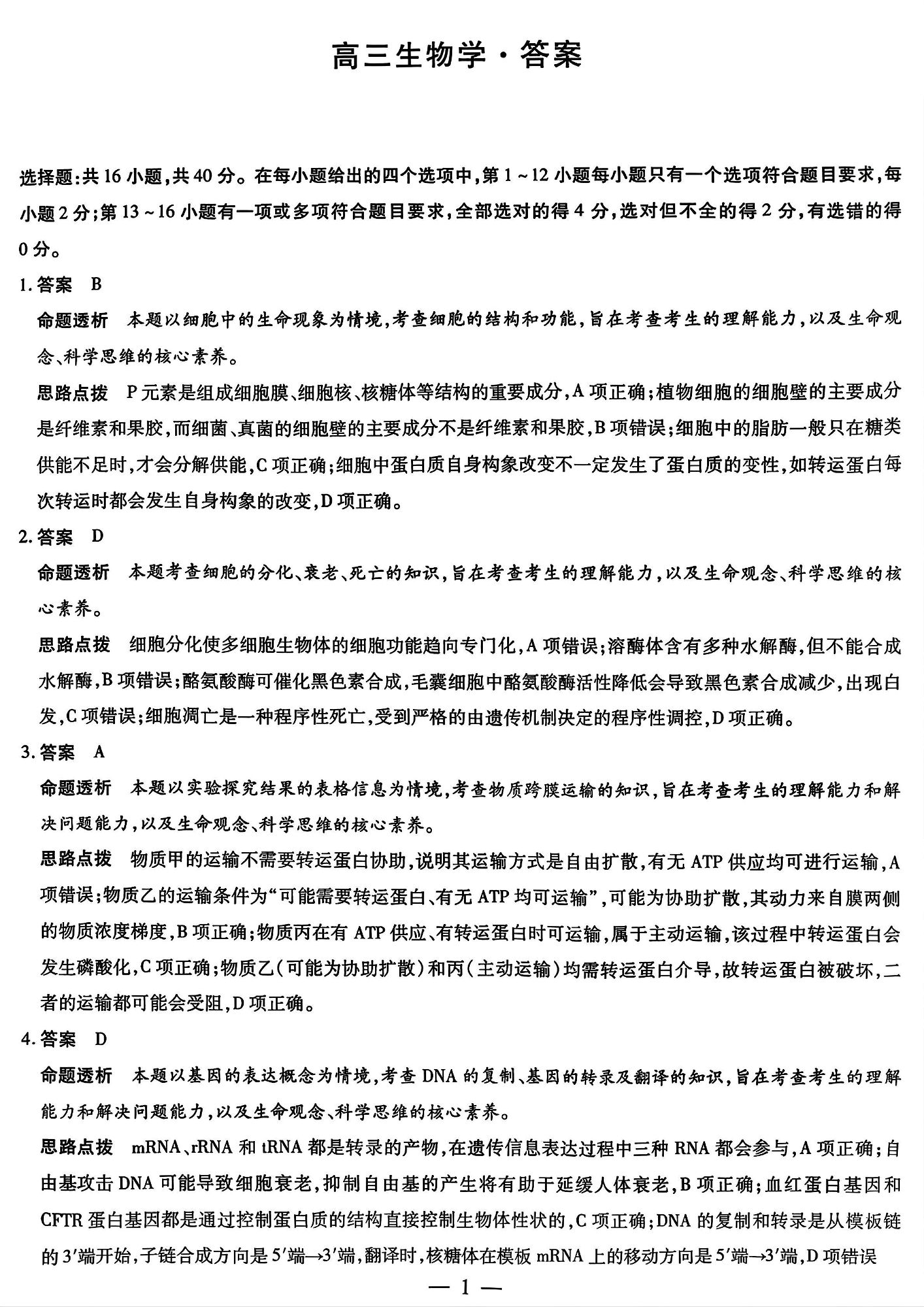 高三生物答案--湖南省湘一名校联盟2026届高三上学期12月质量检测