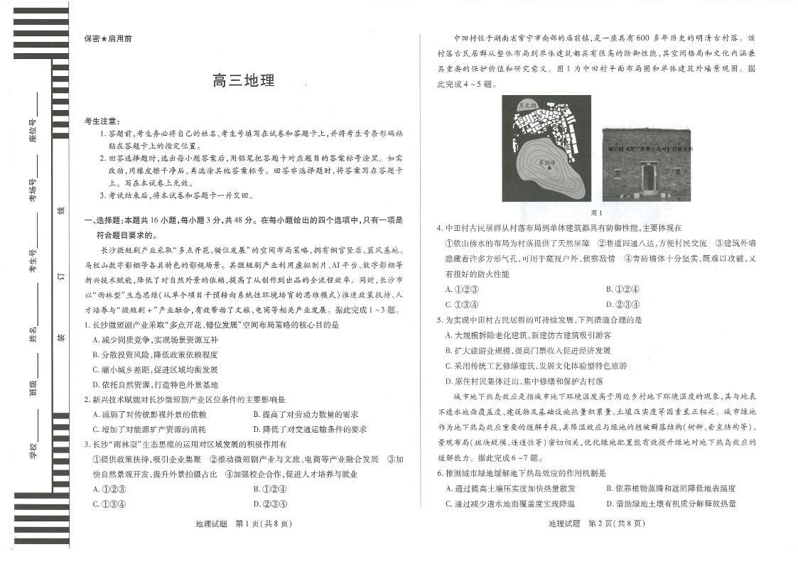 高三地理--湖南省湘一名校联盟2026届高三上学期12月质量检测