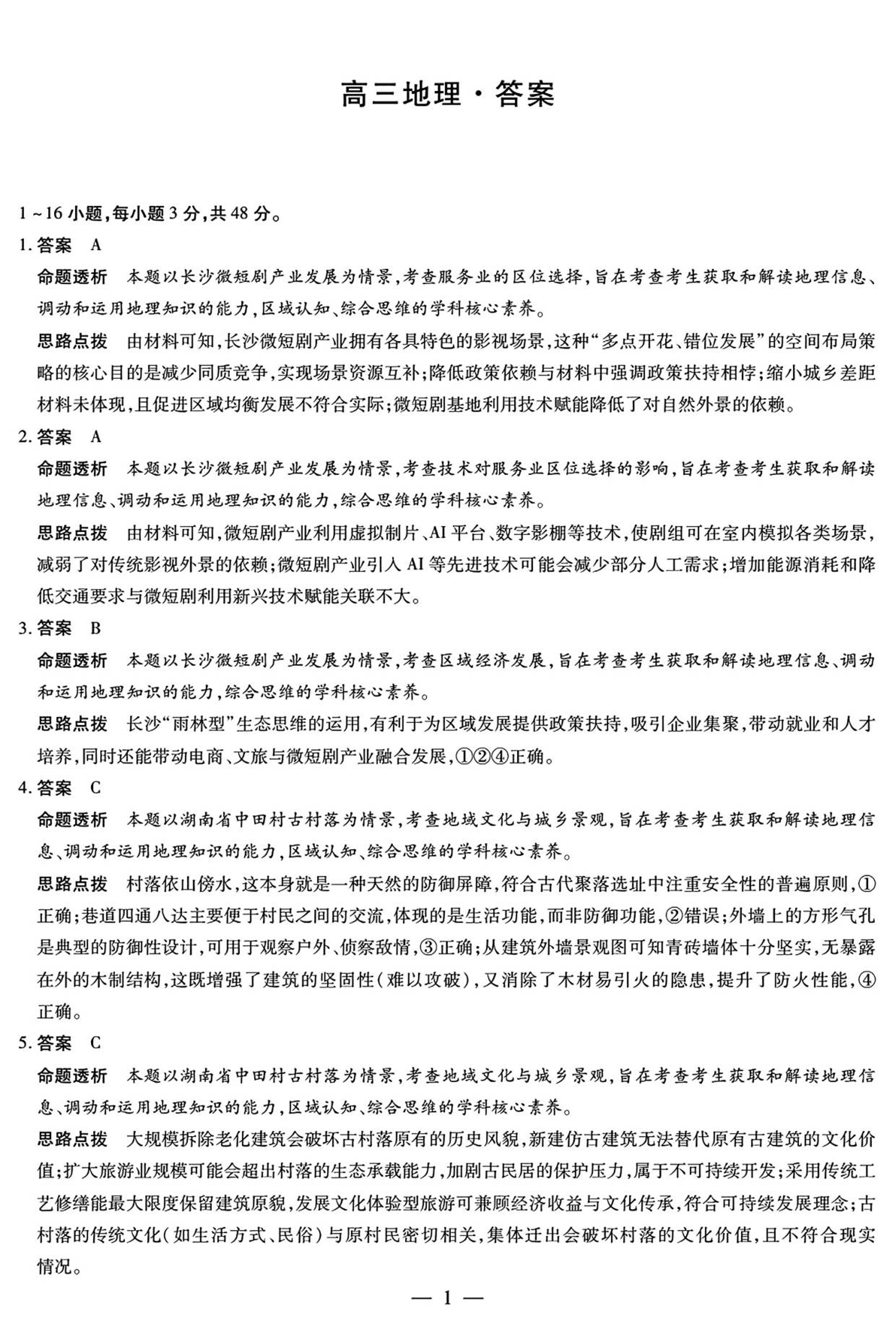 高三地理答案--湖南省湘一名校联盟2026届高三上学期12月质量检测