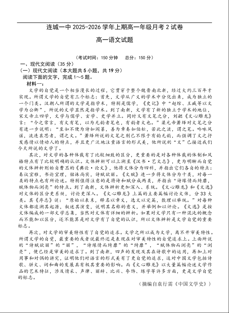 高一语文+答案--福建省连城县第一中学2025-2026学年高一上学期12月月考