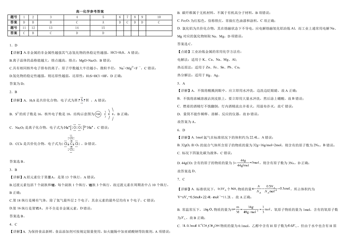 高一化学答案--内蒙古自治区鄂尔多斯市第一中学2025-2026学年高一上学期12月月考