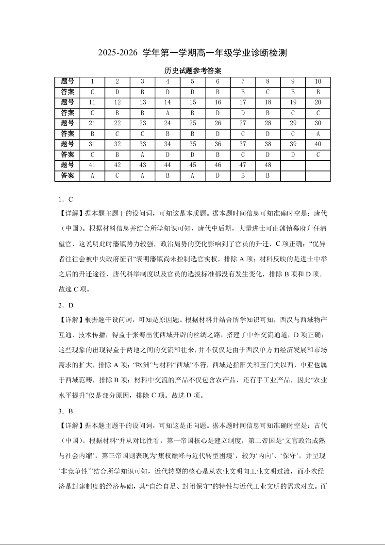 高一历史答案--内蒙古自治区鄂尔多斯市第一中学2025-2026学年高一上学期12月月考