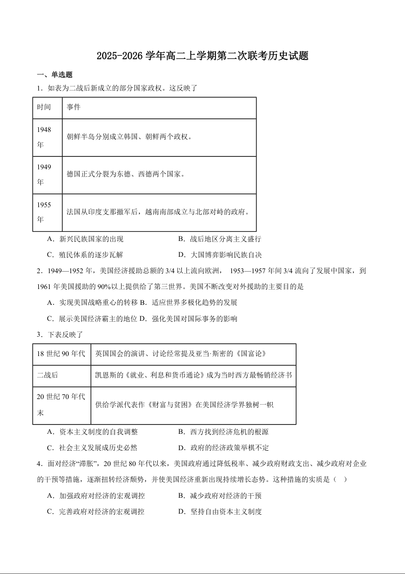 高二历史+答案--福建省泉州市晋江侨声中学、南安侨光中学两校2025-2026学年高二上学期12月联考二