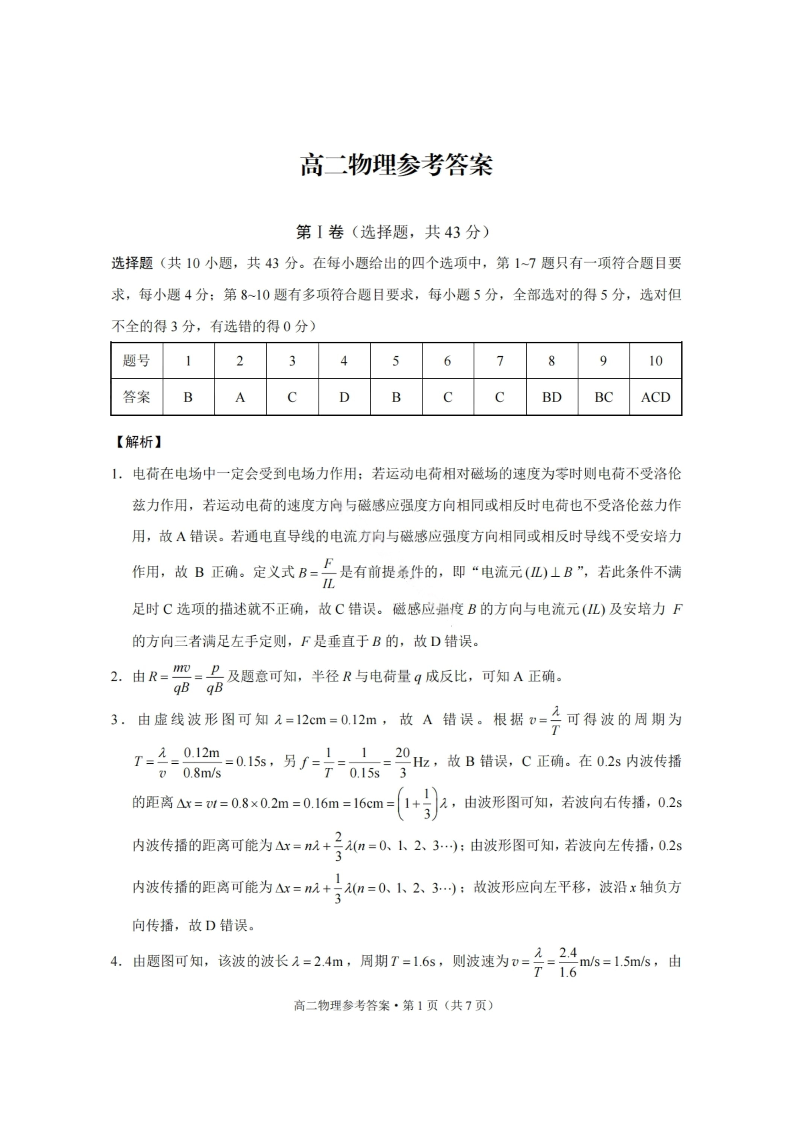 高二物理答案--贵州省贵阳市第一中学2025-2026学年高二上学期12月月考