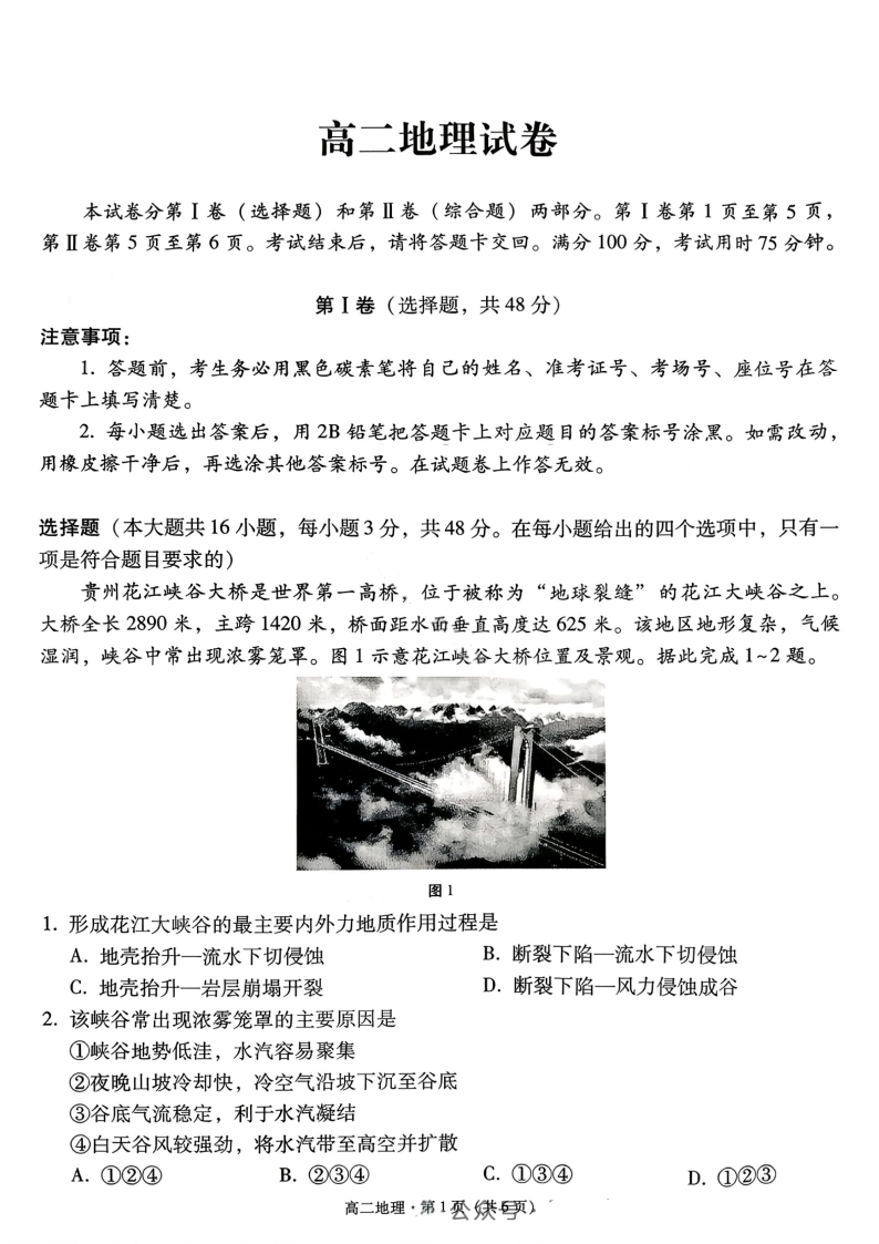高二地理--贵州省贵阳市第一中学2025-2026学年高二上学期12月月考