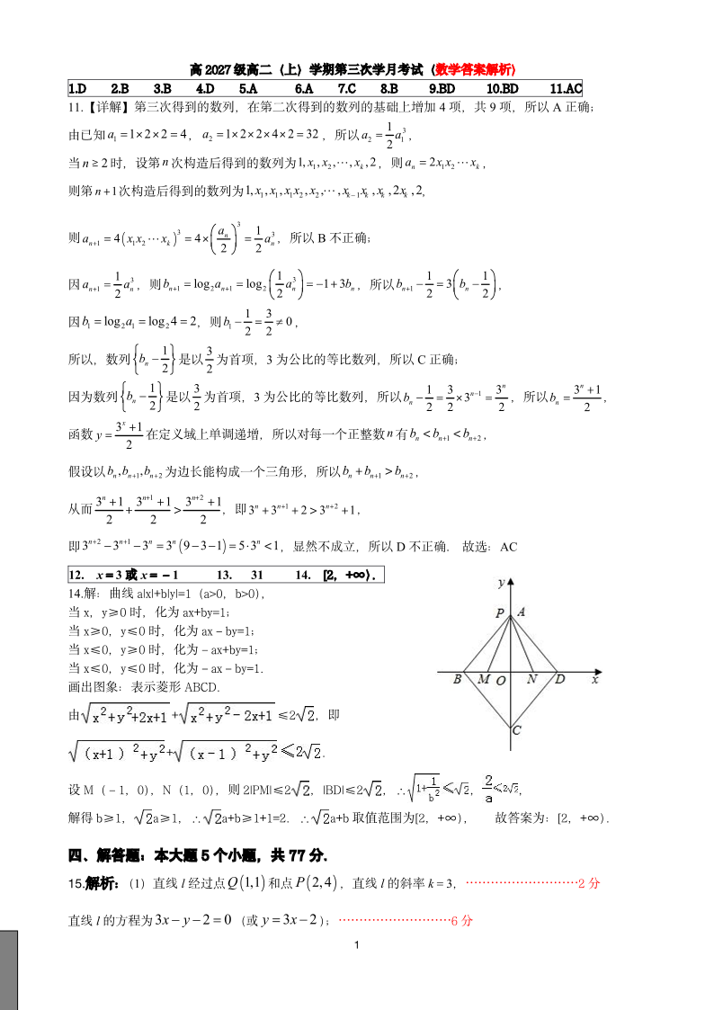 高二数学答案--重庆市渝西中学2025-2026学年高二上学期12月月考
