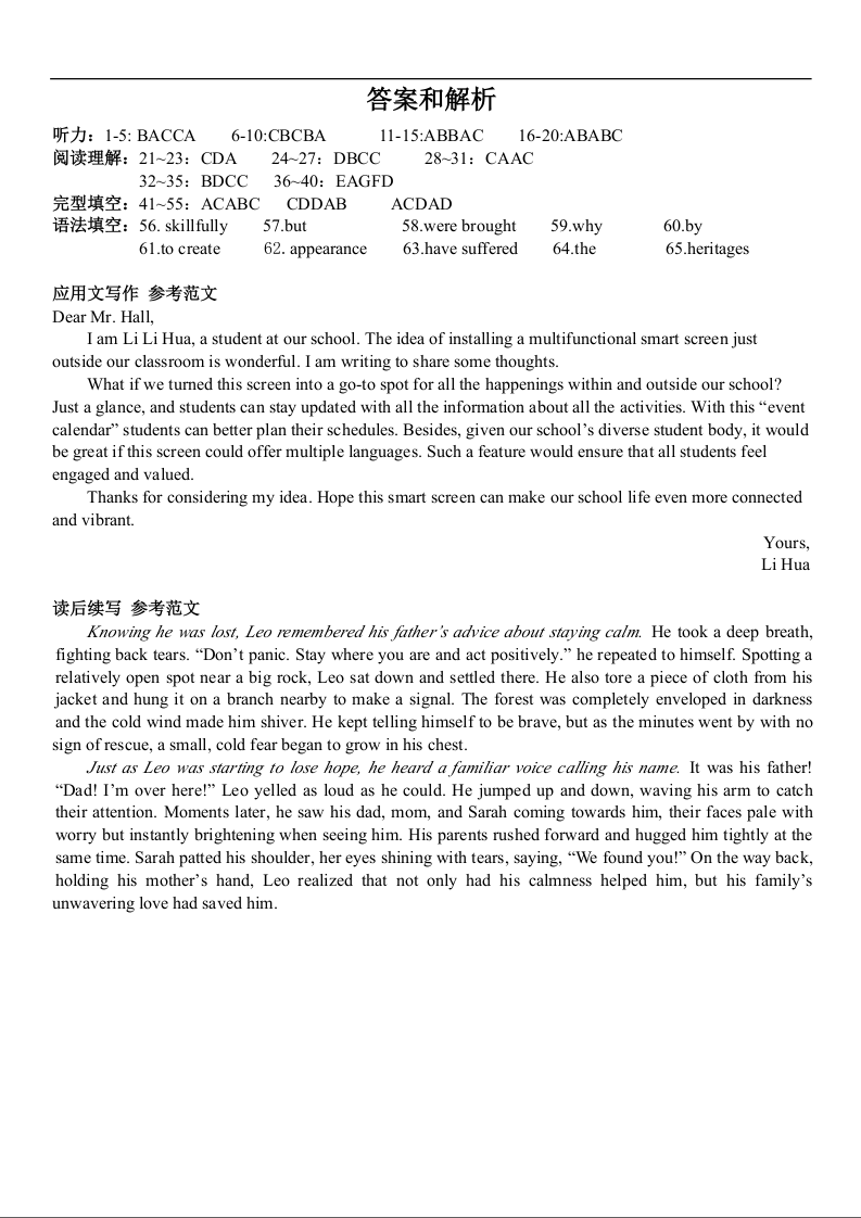高二英语答案--云南省文山壮族苗族自治州文山市第一中学2025-2026学年高二上学期12月月考