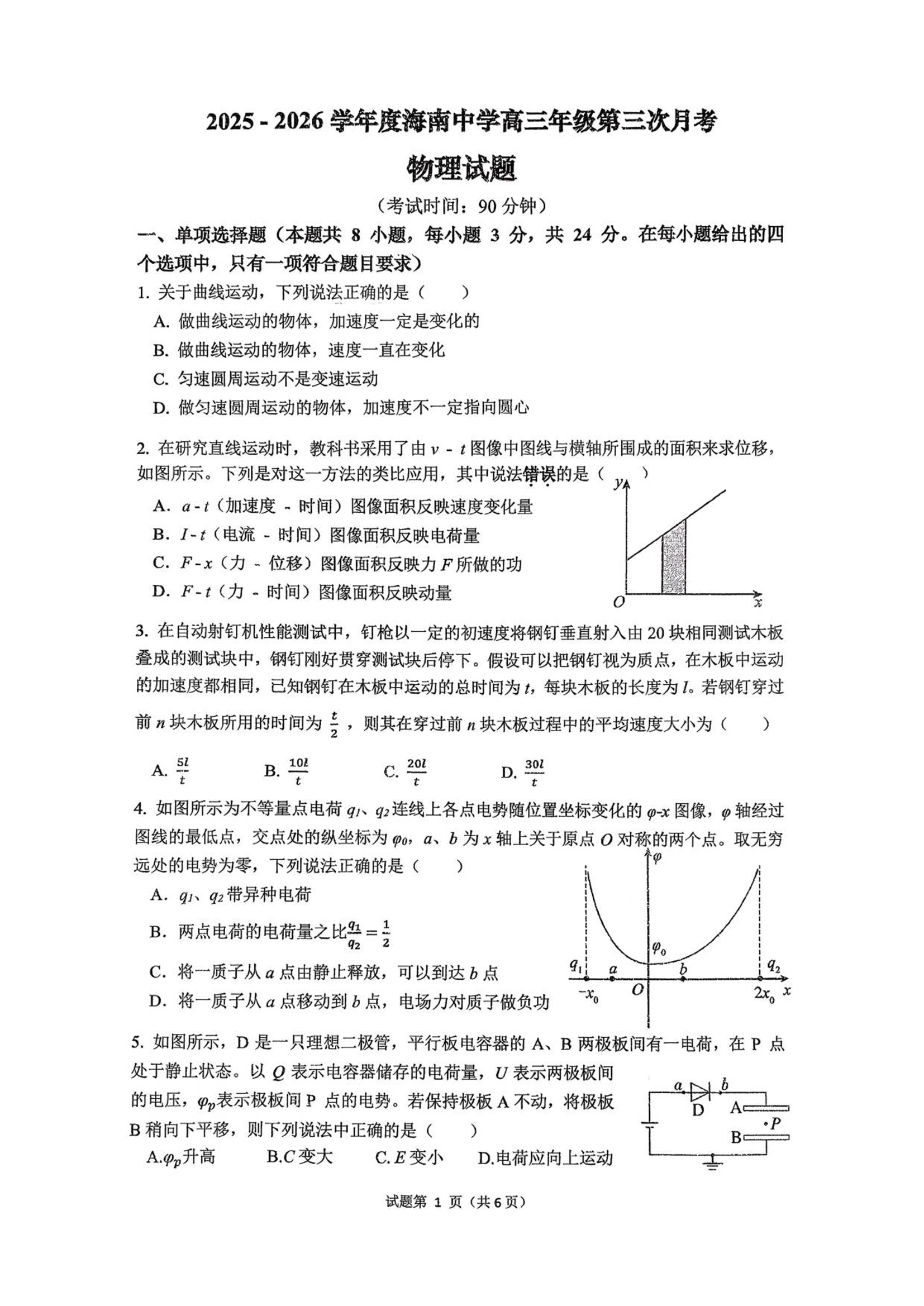 高三物理+答案--海南省海口市海南中学2026届高三上学期12月月考