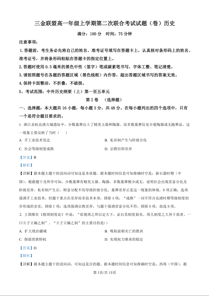 高一历史(精品解析版)--山西省吕梁市三金联盟2025-2026学年高一上学期第二次联合考试(12月)