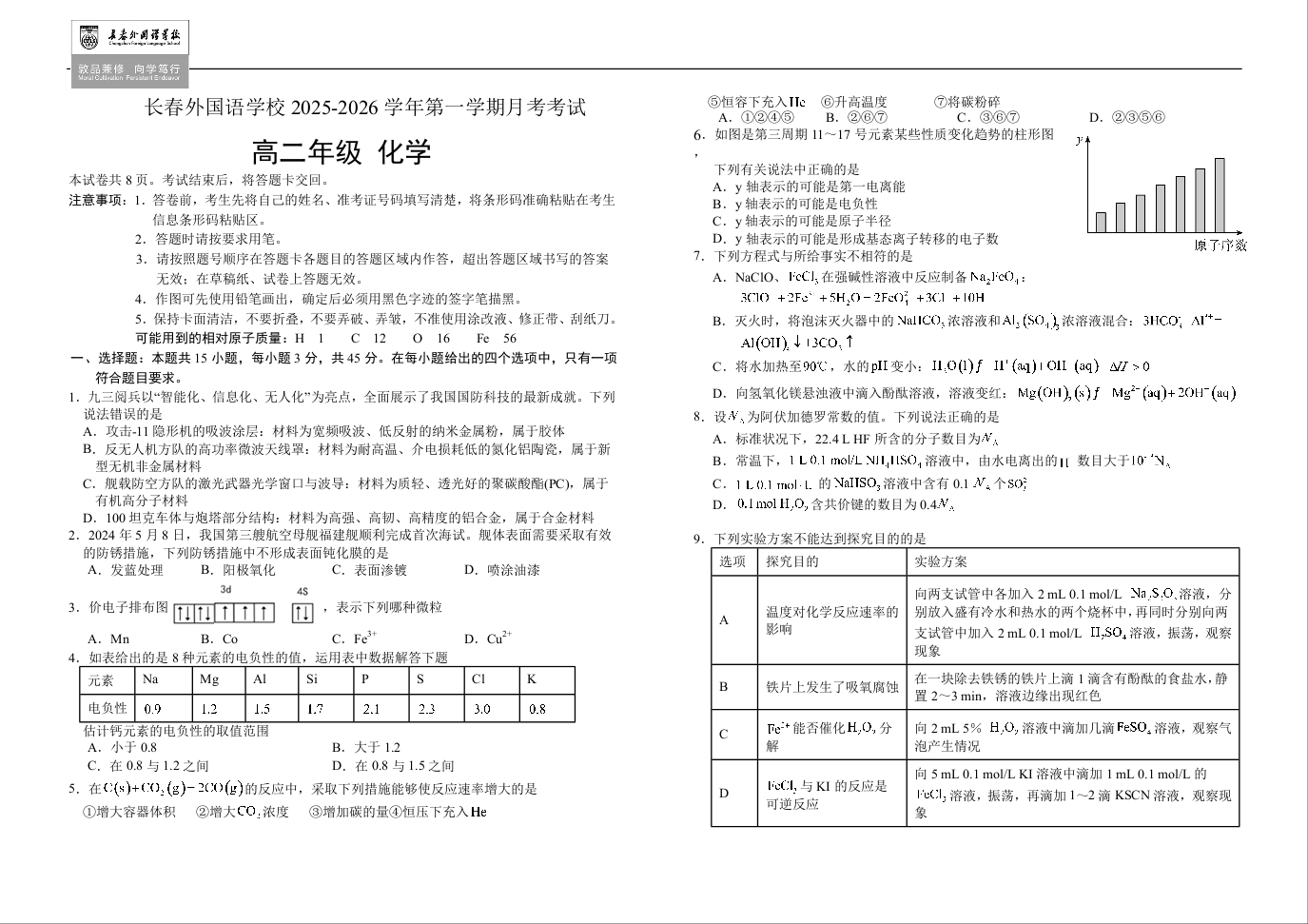 高二化学+答案--吉林省长春外国语学校2025-2026学年高二上学期12月月考