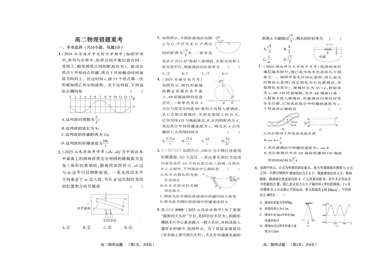 高二物理+答案--山东省菏泽第一中学(八一路校区)2025-2026学年高二上学期12月测试