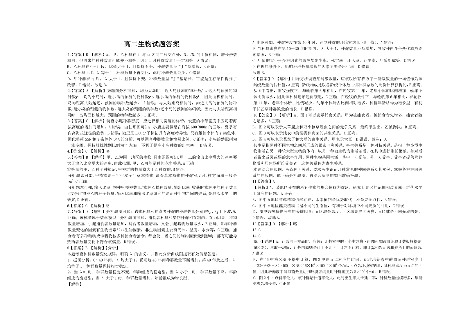 高二生物答案--山东省菏泽第一中学(八一路校区)2025-2026学年高二上学期12月测试
