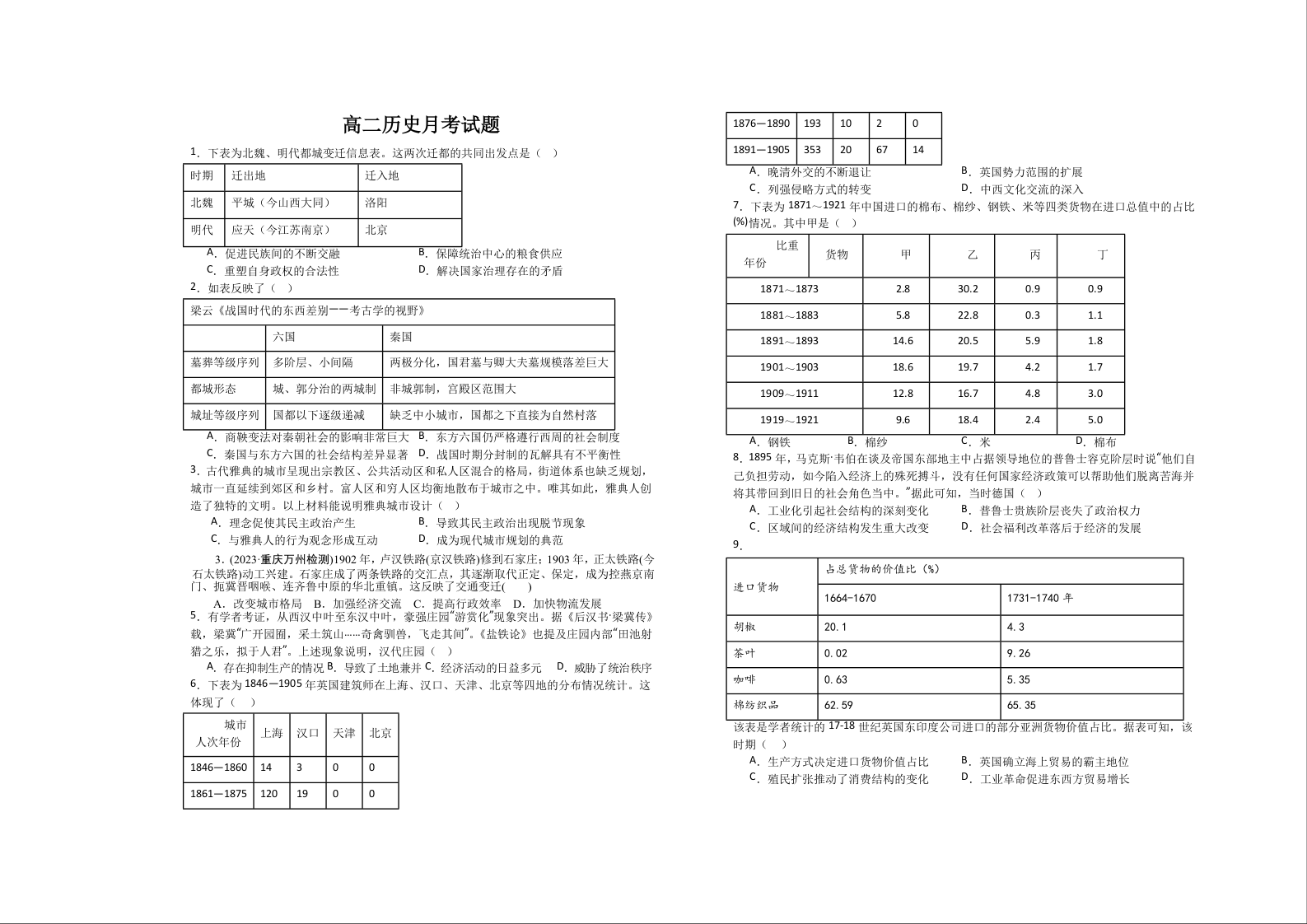 高二历史--山东省菏泽第一中学(八一路校区)2025-2026学年高二上学期12月测试