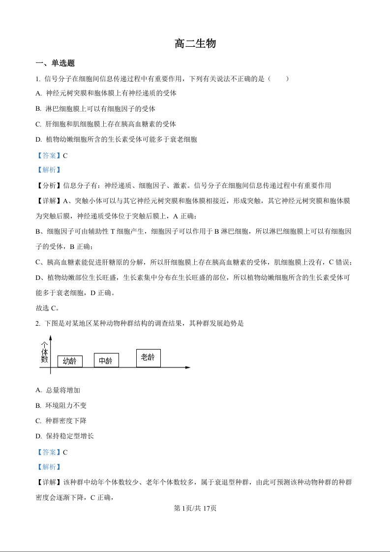 高二生物(精品解析版)--陕西省镇安中学2025-2026学年高二上学期12月月考