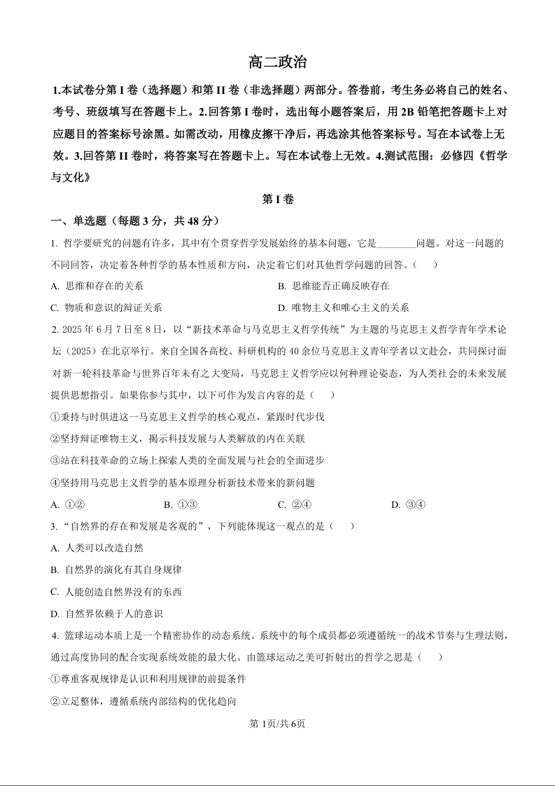 高二政治(原卷版)--陕西省镇安中学2025-2026学年高二上学期12月月考