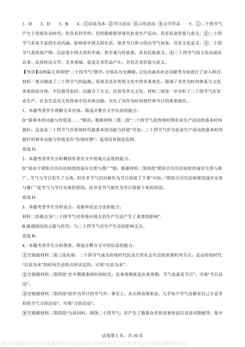 高二语文(解析版)--四川省成都外国语学校2025-2026学年高二上学期12月月考