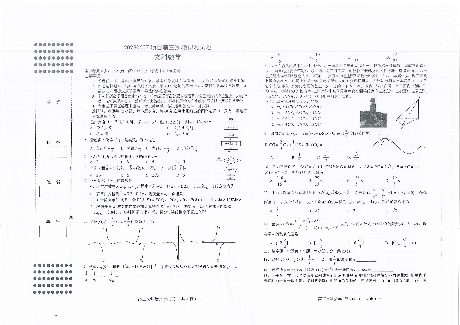 高三文数--江西20230607项目第三次模拟测试卷(南昌三模)