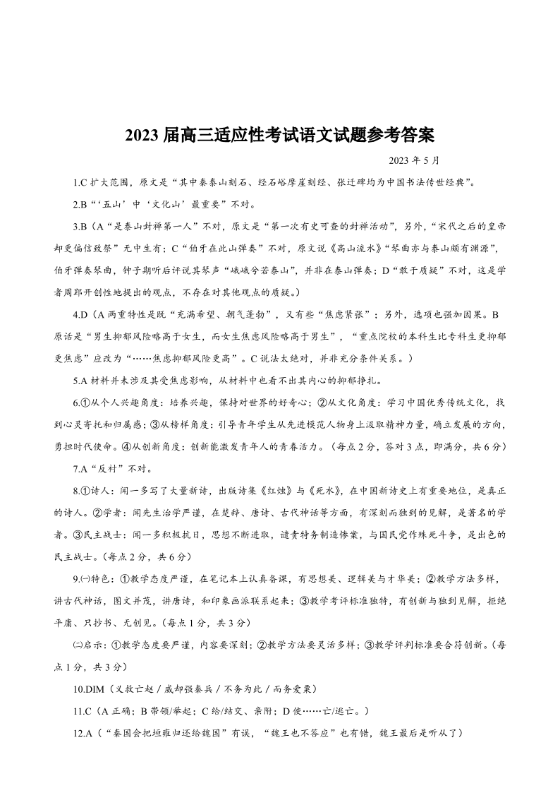 高三语文答案--江西省赣州市2025届高三第二次模拟考试