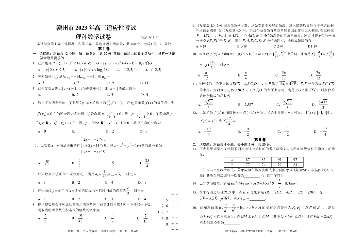 高三理数--江西省赣州市2025届高三第二次模拟考试