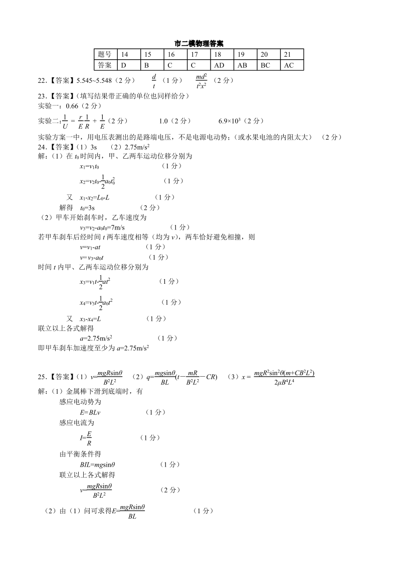 高三物理答案--江西省赣州市2025届高三第二次模拟考试