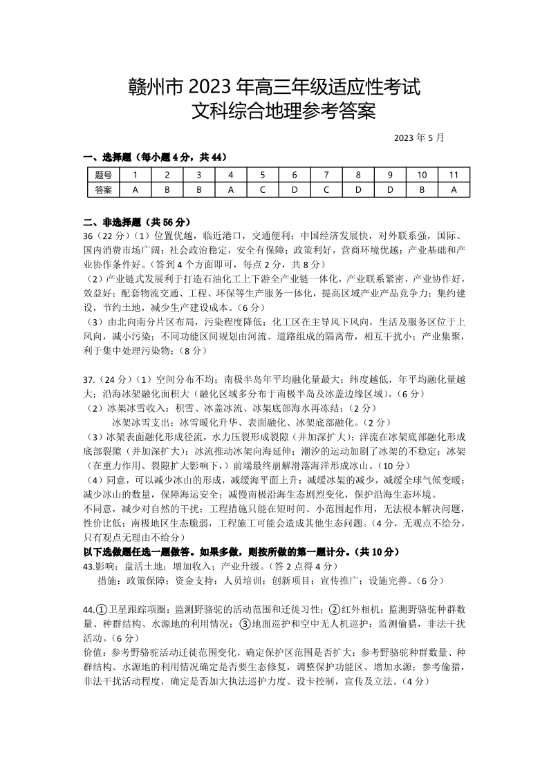 高三地理答案--江西省赣州市2025届高三第二次模拟考试
