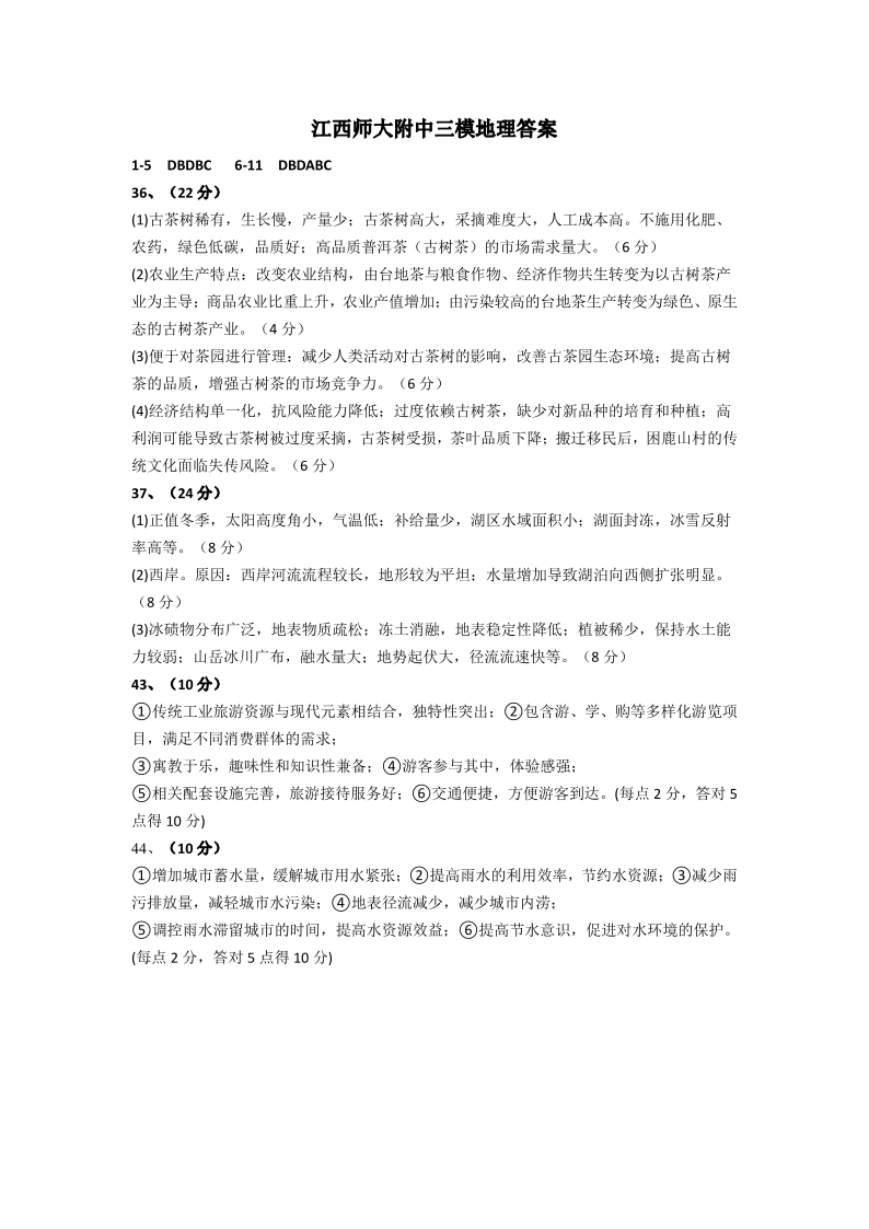 高三文综答案--江西省师范大学附属中学2023届高三三模