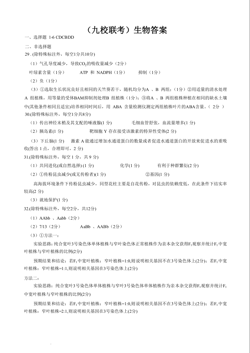 高三生物答案--江西省宜春市八校2023届高三第二次联考