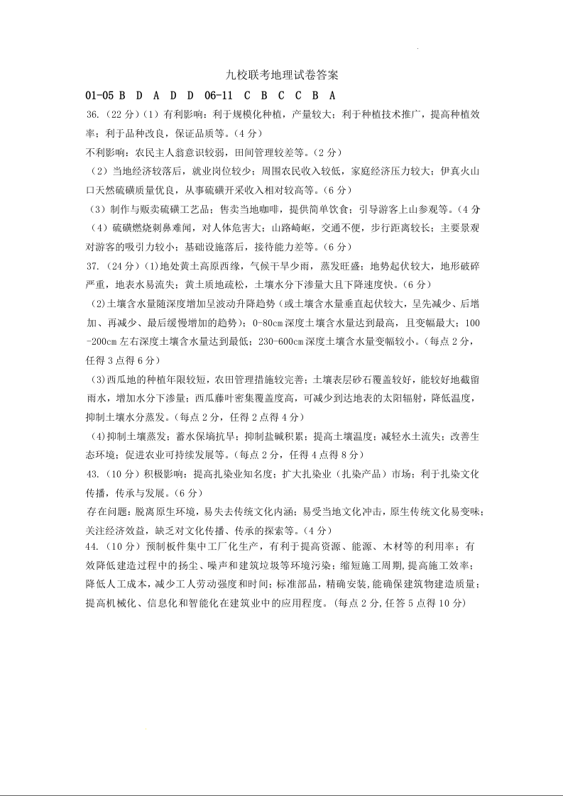 高三地理答案--江西省宜春市八校2023届高三第二次联考