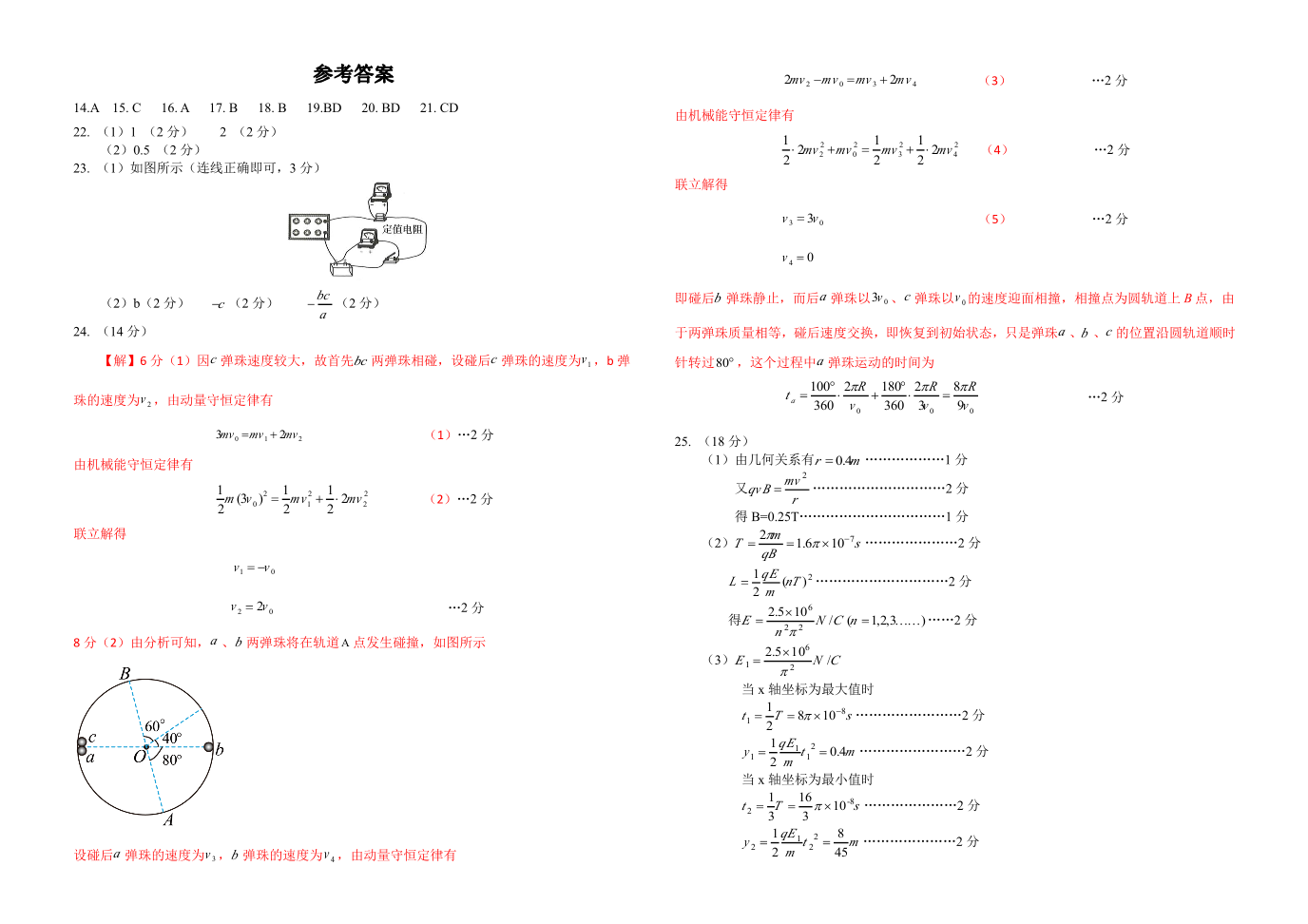 高三物理答案--江西省重点中学九校协作体2023届高三第二次联考