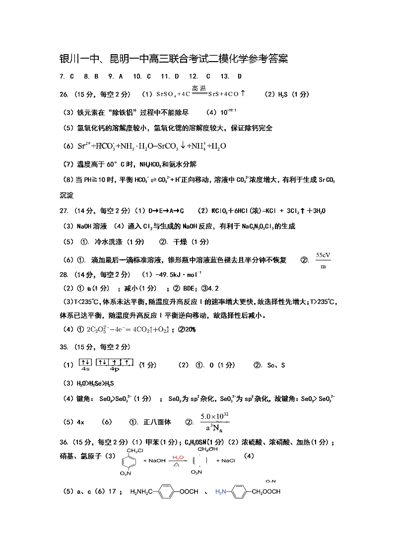 高三理综答案--宁夏银川一中、昆明一中2023届高三联合二模考试