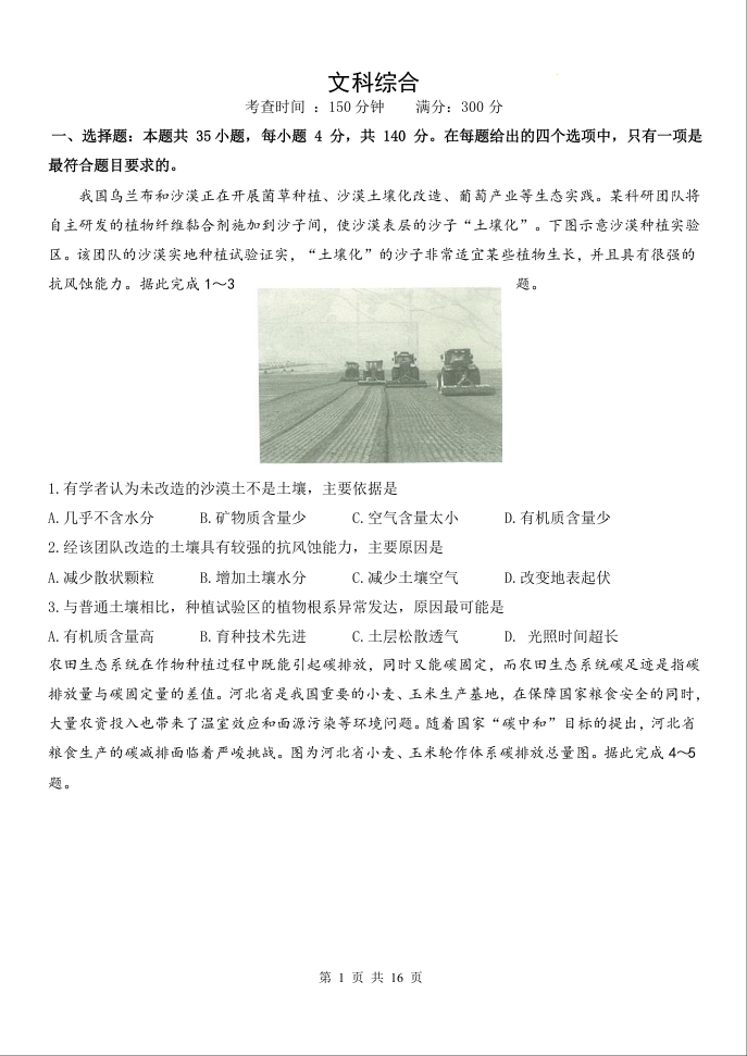 高三文综--山西省太原市山西大学附属中学校2023届高三下学期5月月考