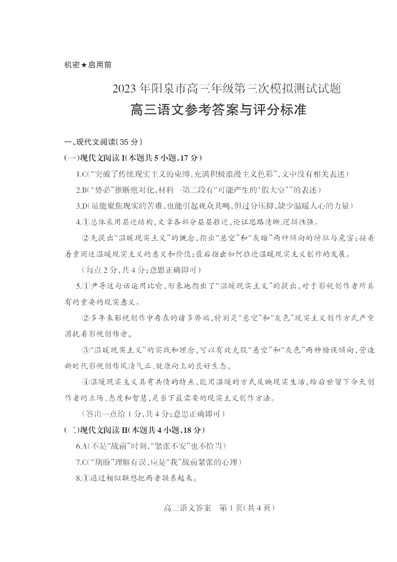 高三语文答案--山西省阳泉市2023届高三三模