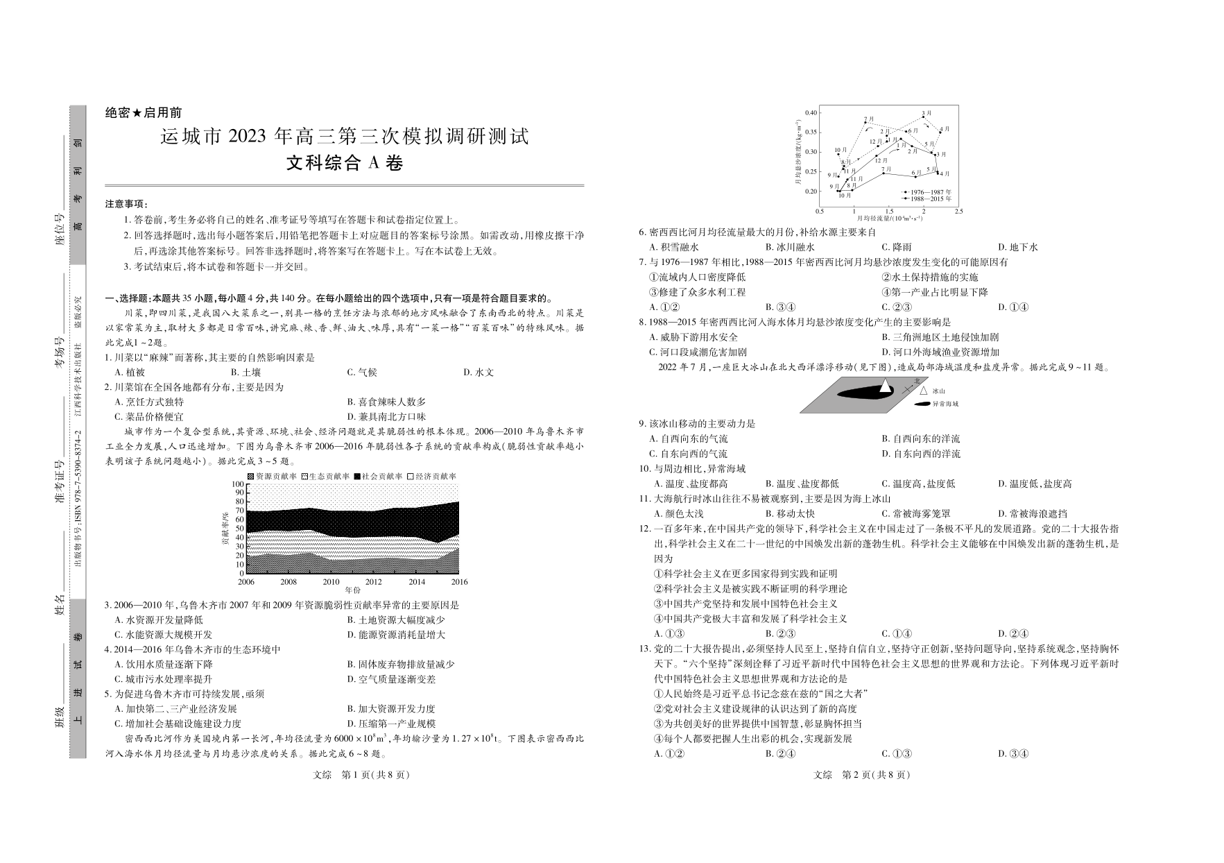 高三文综--山西省运城市2023届高三第三次模拟调研测试