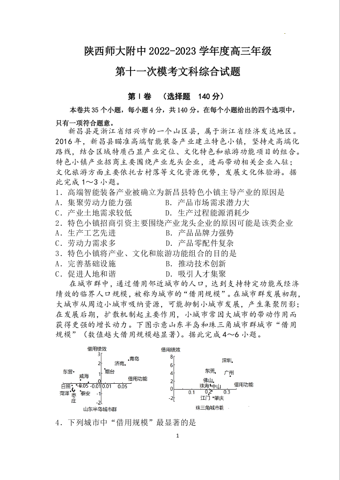高三文综--陕西师大附中2022-2023学年度高三年级第十一次模考