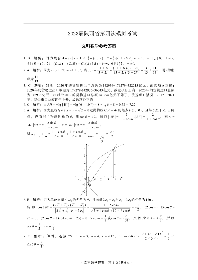 高三文数答案--陕西省2023届第四次模拟考试(菁师联盟)