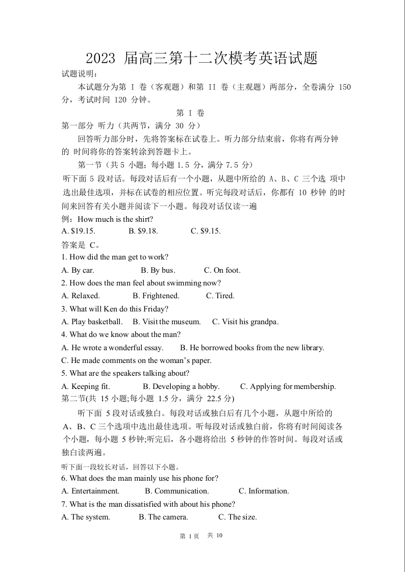 高三英语--陕西省宝鸡市陈仓区等2地2023届高三下学期三模 (2)