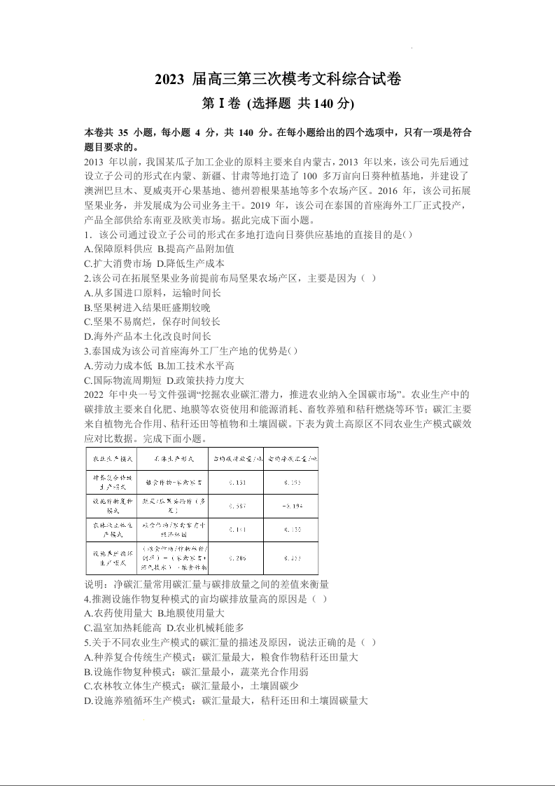 高三文综+答案--陕西省宝鸡市陈仓区等2地2023届高三下学期三模