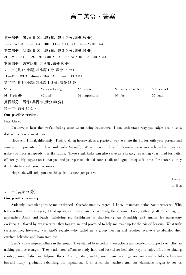 高二英语(安徽)答案--安徽省部分学校(合肥六中)2025-2026学年高二上学期12月联考