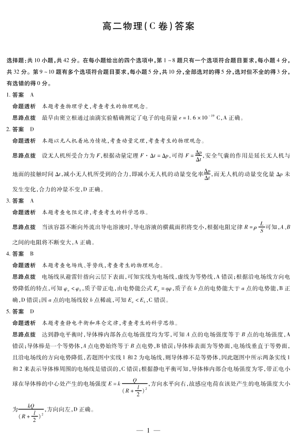 高二物理C答案--安徽省部分学校(合肥六中)2025-2026学年高二上学期12月联考