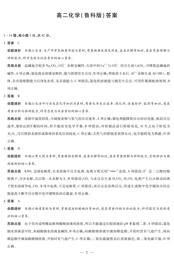 高二化学(鲁科版)答案--安徽省部分学校(合肥六中)2025-2026学年高二上学期12月联考