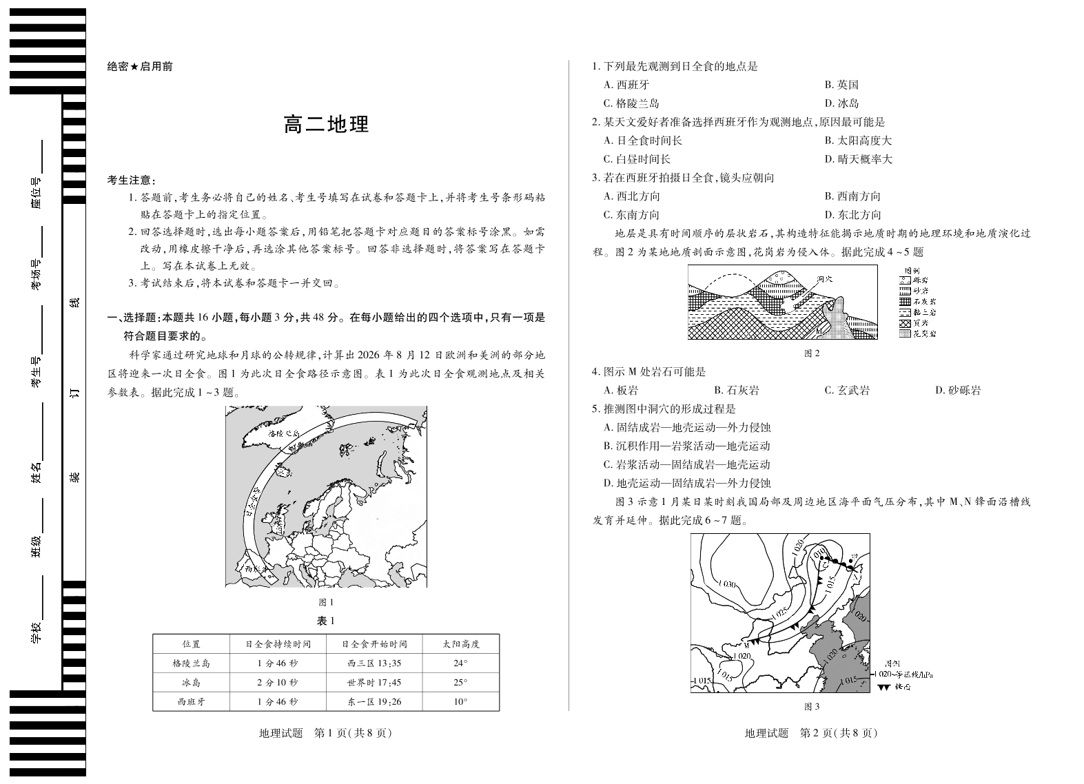 高二地理--安徽省部分学校(合肥六中)2025-2026学年高二上学期12月联考