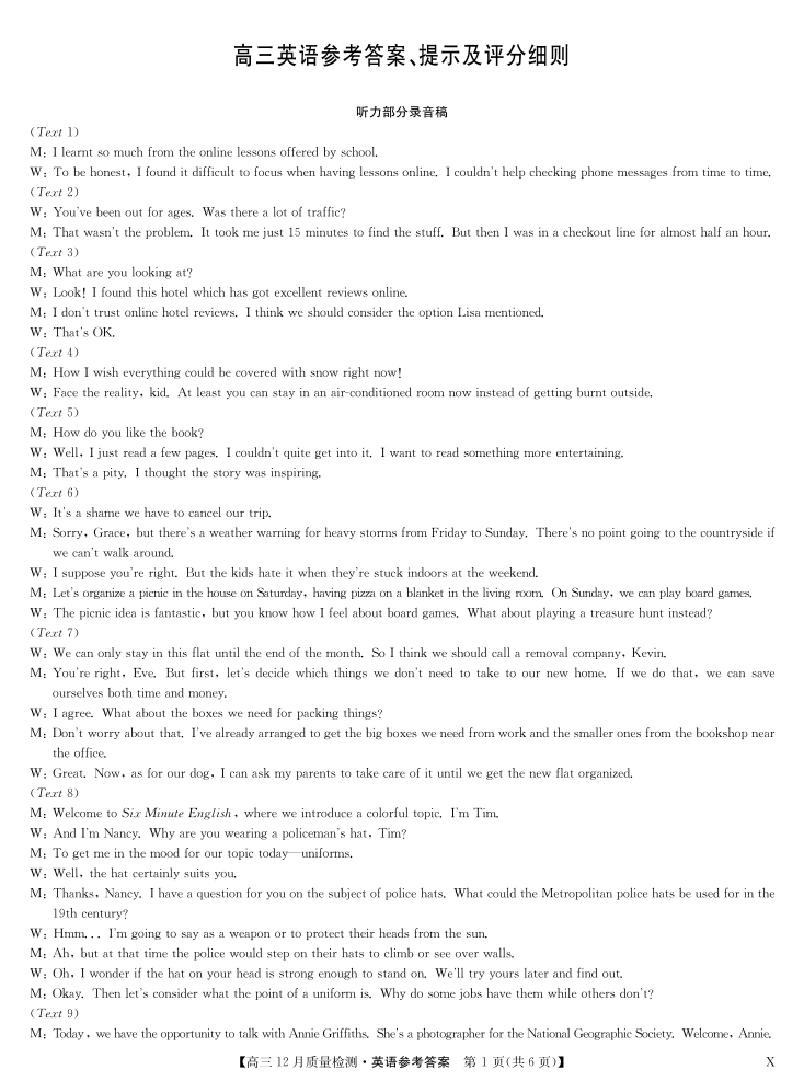 高三英语答案--辽宁黑龙江吉林内蒙古九师联盟高三12月质量检测