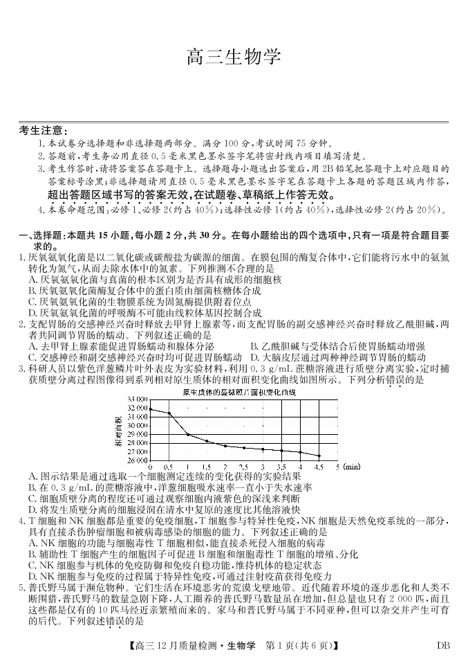 高三生物--辽宁黑龙江吉林内蒙古九师联盟高三12月质量检测