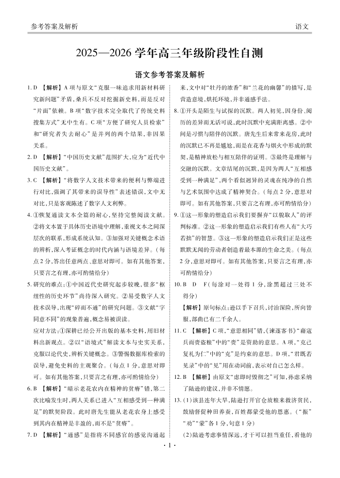 高三语文答案--内蒙古衡水金卷2026届高三上学期12月阶段性自测