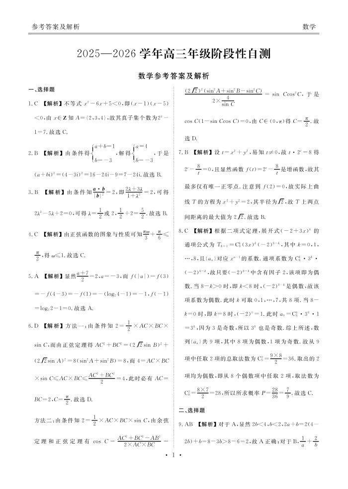 高三数学答案--内蒙古衡水金卷2026届高三上学期12月阶段性自测